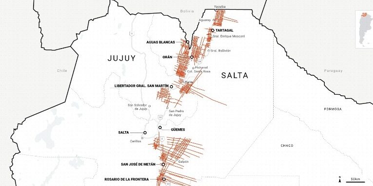 En el centro de Salta y el este de Jujuy se concentran las trazas donde se instalaron boosters sísmicos en la década del 70.